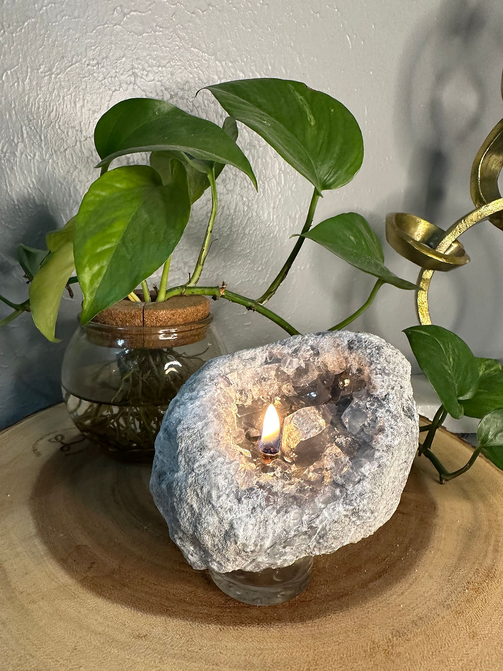 Whether you’re drawn to the warm glow of a geode oil lamp, the soft illumination of a crystal suncatcher, or the soothing scent of a hand-poured candle, you can trust that each item has been made with love, intention, and attention to detail.